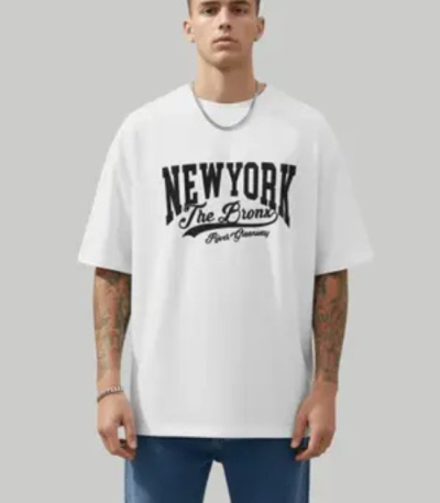 Men Graphic Print Round Neck Polycotton White T-Shirt