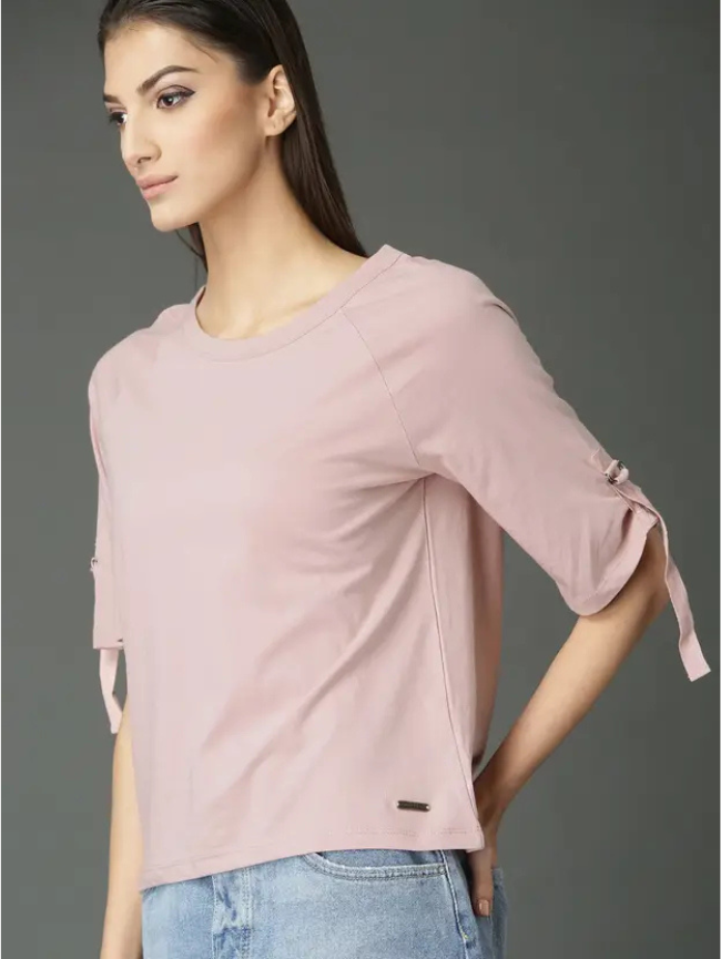 Casual Regular Sleeves Solid Women Pink Top