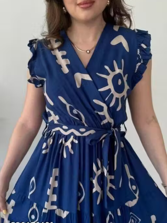 Women Fit and Flare Blue Above Knee/Mid Thigh Length Dress