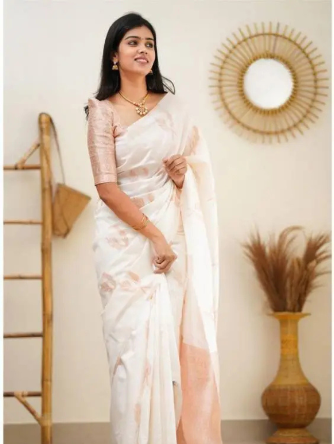 Embellished Banarasi Art Silk Saree (White)