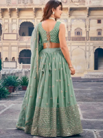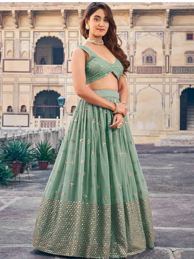 Embellished Semi Stitched Lehenga Choli (Light Green)