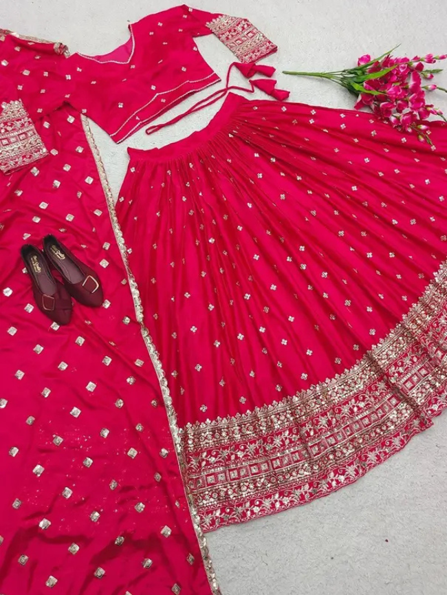 Embellished Semi Stitched Lehenga Choli (Pink)