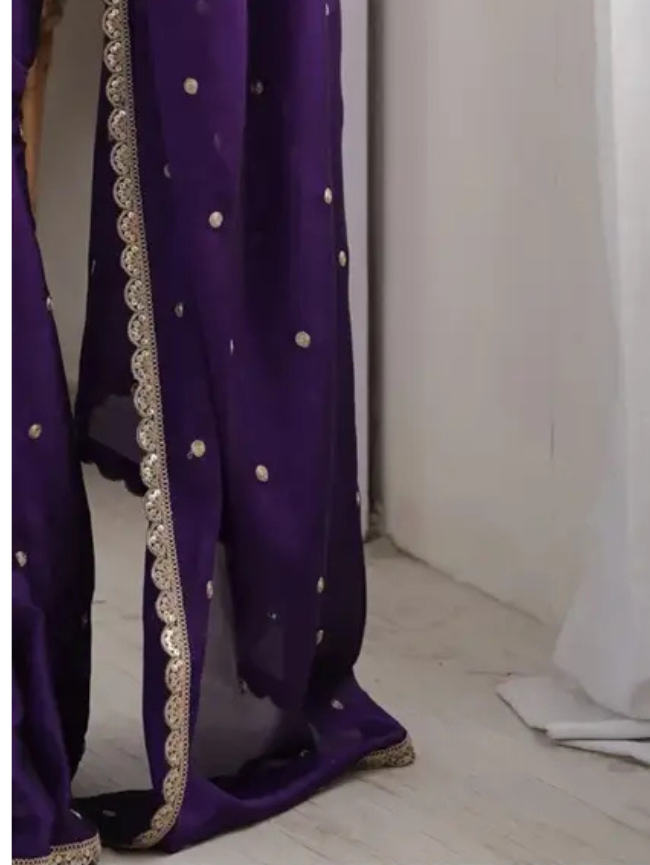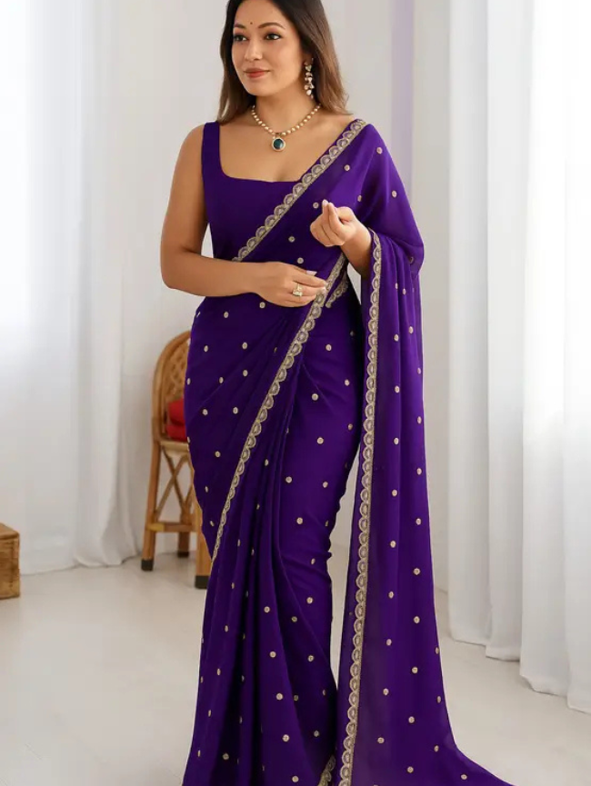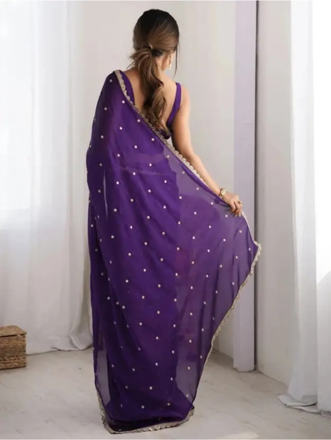 Embroidered Bollywood Chiffon Saree (Purple)