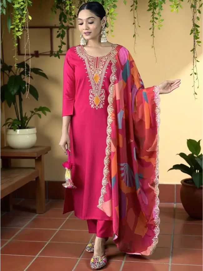 Embroidered Kurta, Trouser/Pant & Dupatta Set