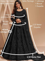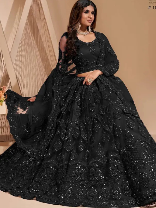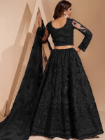 Embroidered Semi Stitched Lehenga Choli (Black)