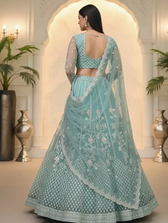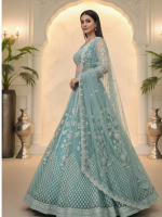 Embroidered Semi Stitched Lehenga Choli (Blue)