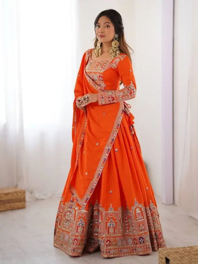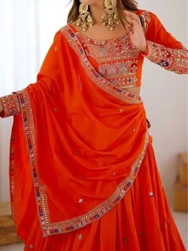 Embroidered Semi Stitched Lehenga Choli (Orange)