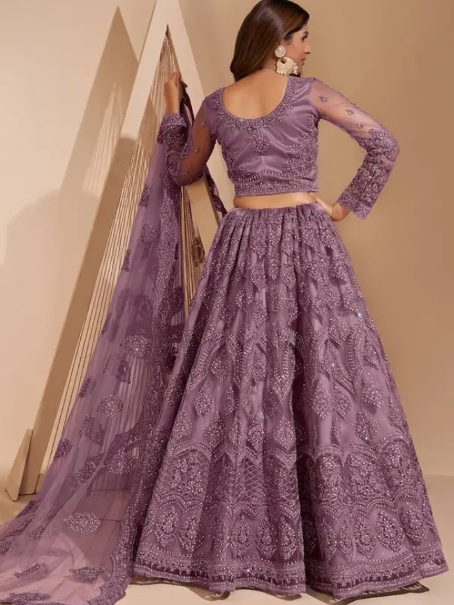 Embroidered Semi Stitched Lehenga Choli (Purple)