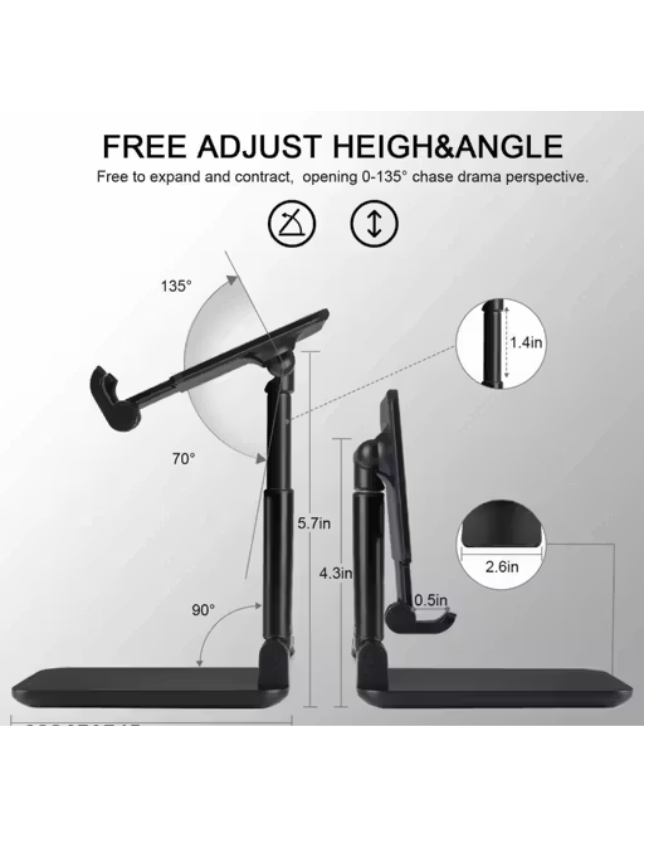 Mobile Phone Holder, Adjustable, Foldable, Anti-Skid, Wide Compatibility (Black) Tabletop