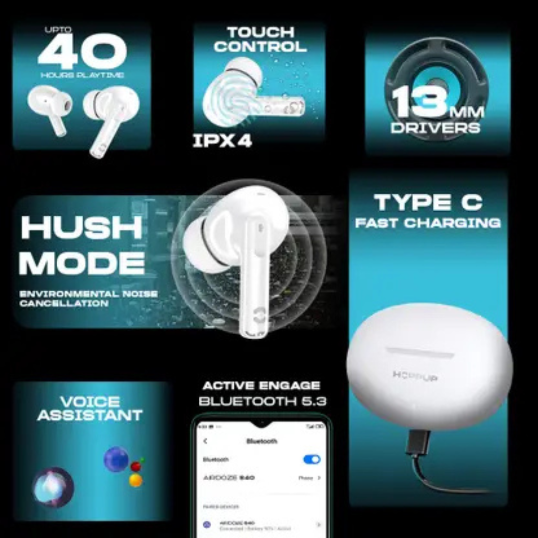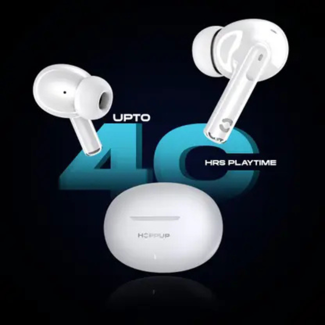 HOPPUP AirDoze S40 Earbuds with 13MM Drivers, 40H Playtime, Rage Mode,ENC & Type-C Bluetooth (White, True Wireless)