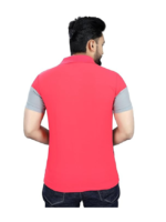 Men Checkered Zip Neck Cotton Blend White, Pink T-Shirt
