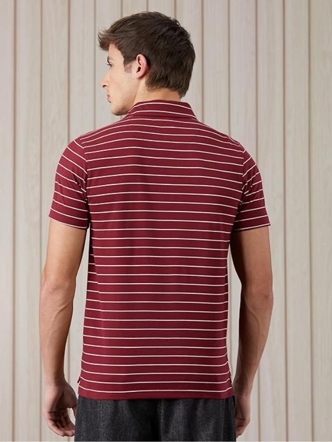Men Colorblock Polo Neck Cotton Blend Grey T-Shirt