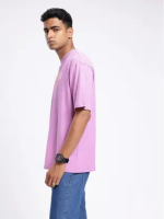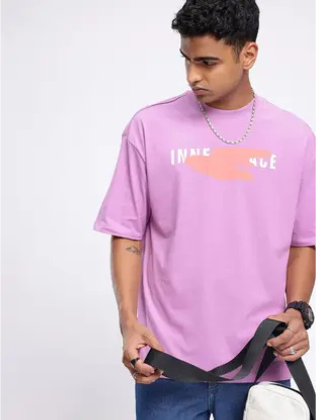 Men Printed Round Neck Pure Cotton Purple T-Shirt
