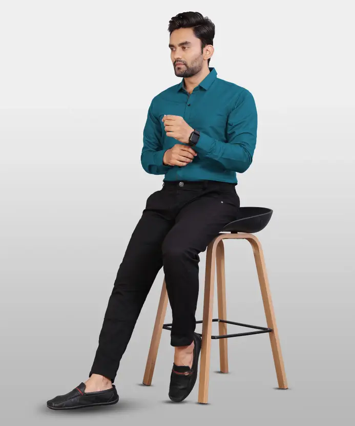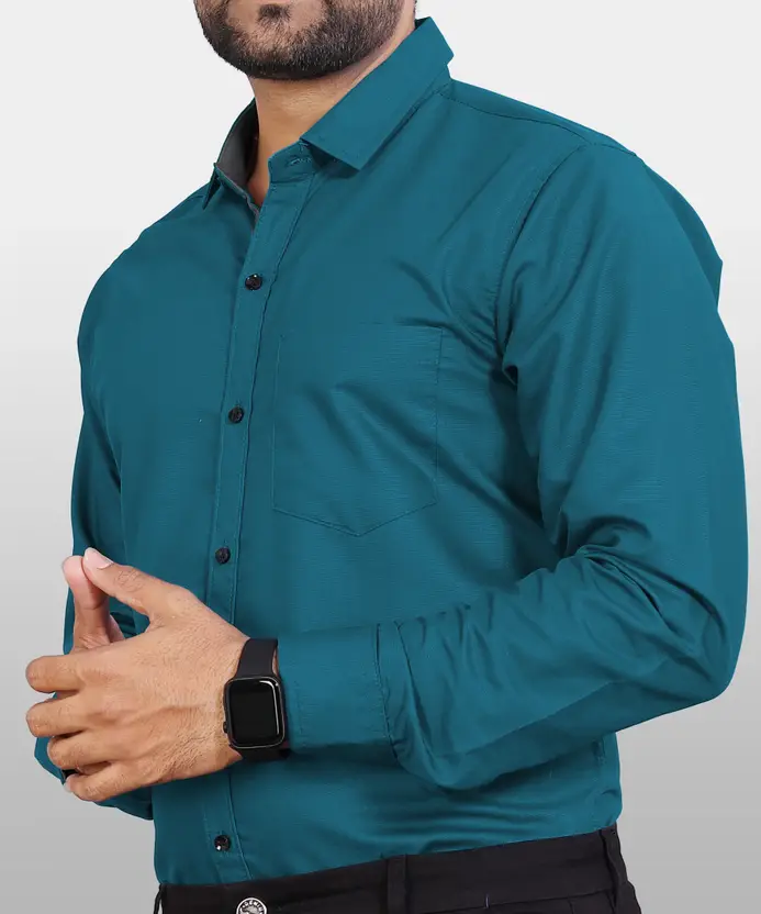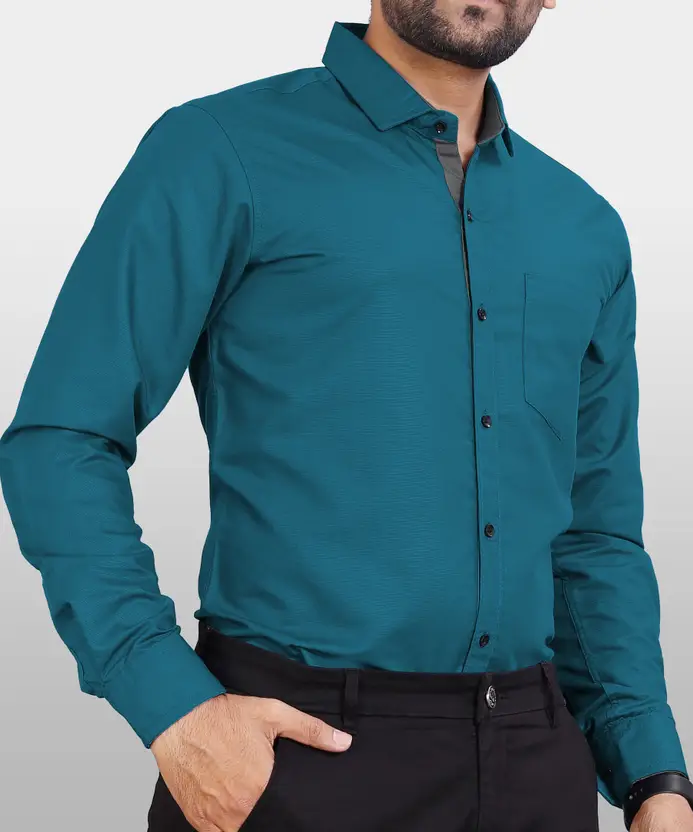 Men Regular Fit Solid Button Down Collar Formal Shirt