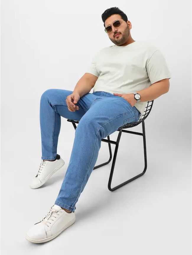 Men Regular Mid Rise Light Blue Jeans