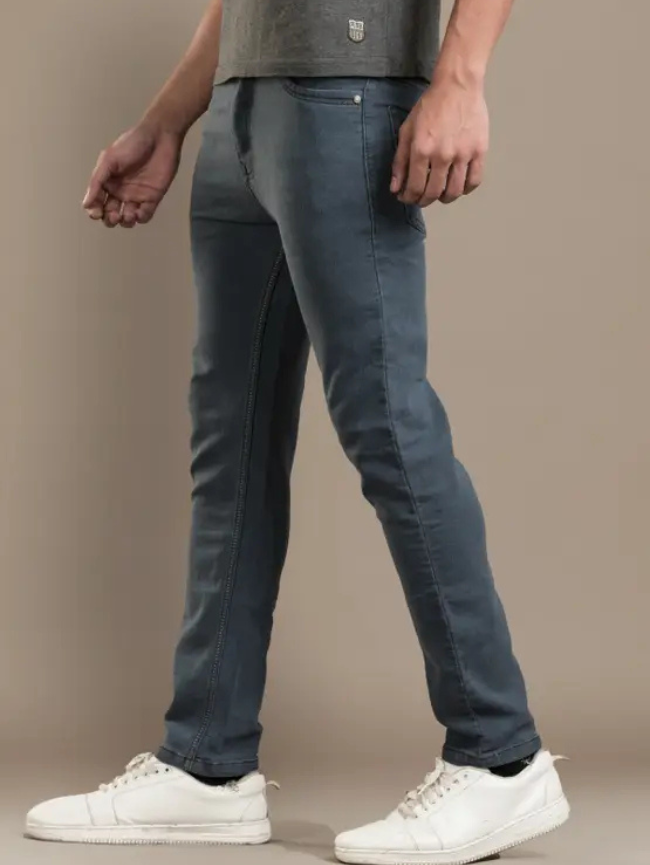 Men Slim Mid Rise Grey Jeans