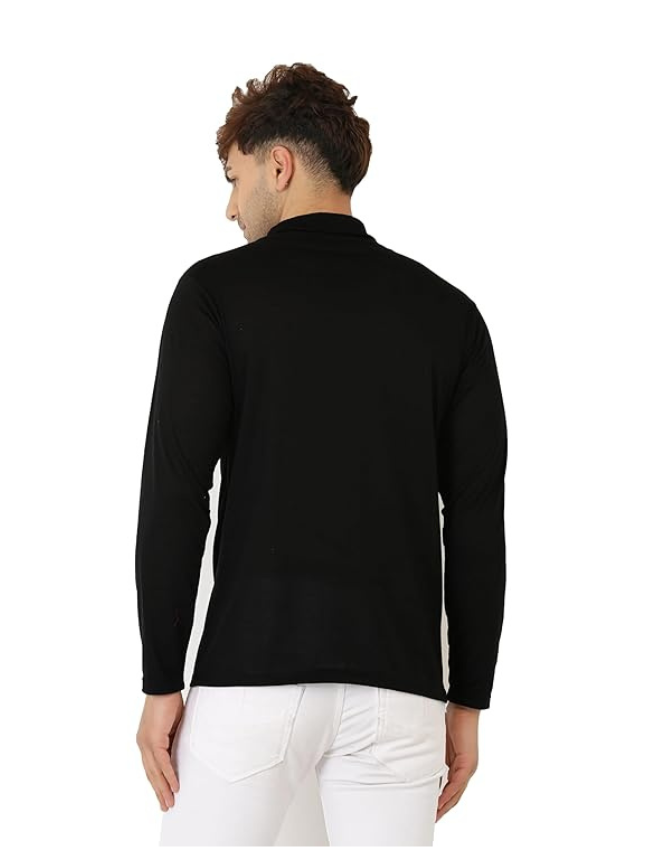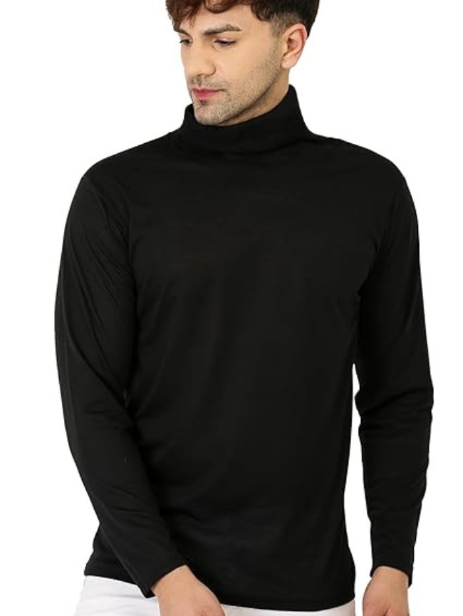 Men Solid High Neck Wool Blend Black T-Shirt