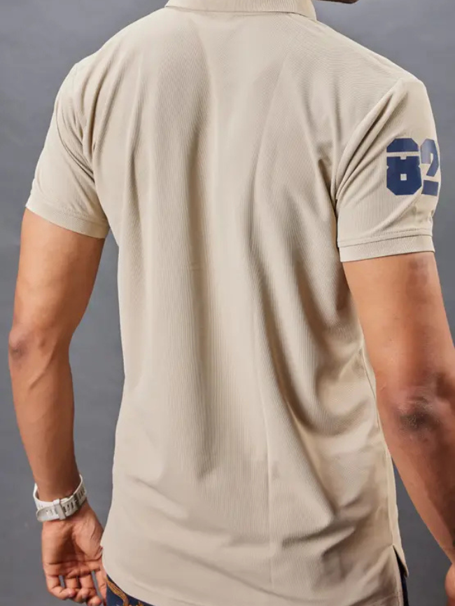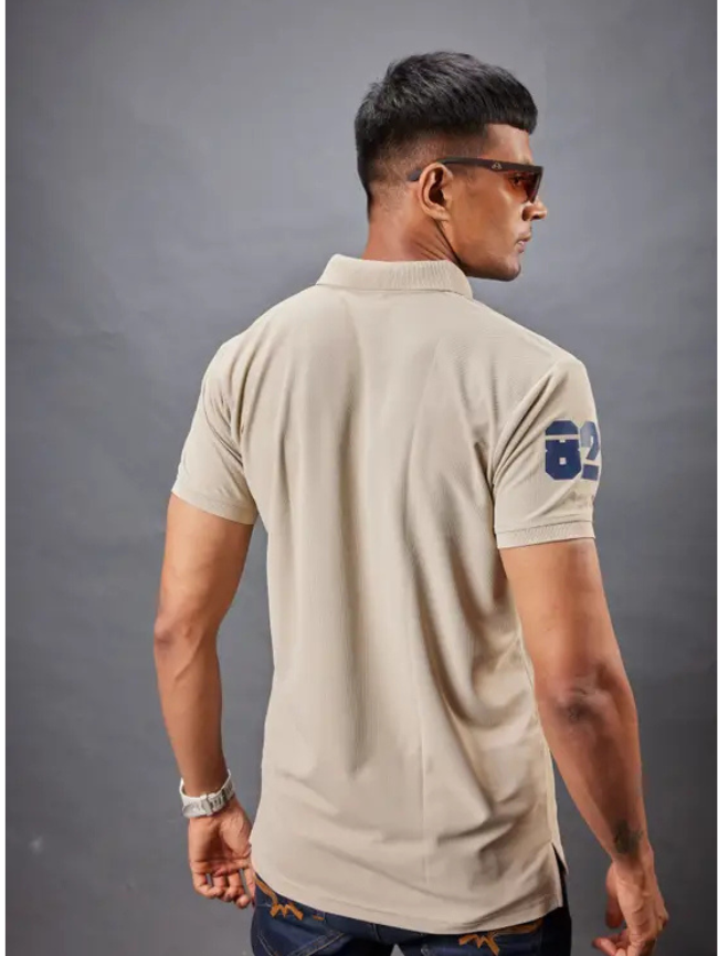 Men Solid Polo Neck Polyester Beige T-Shirt
