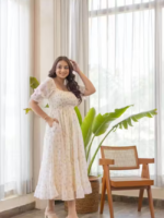 Women Fit and Flare White Maxi/Full Length Dress