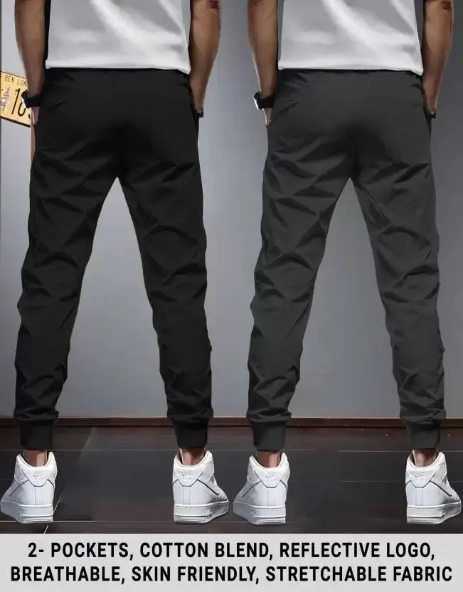Pack of 2 Men Printed Black, Grey Track Pants