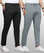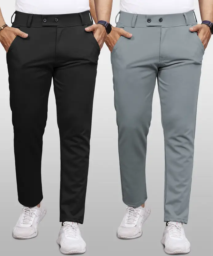 Pack of 2 Men Regular Fit Black, Grey Lycra Blend Trousers