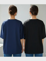 Pack of 2 Women Printed Round Neck Cotton Blend Black, Navy Blue T-Shirt