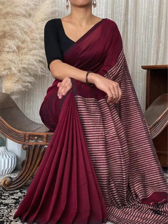 Printed Bollywood Pure Cotton Saree (Brown)
