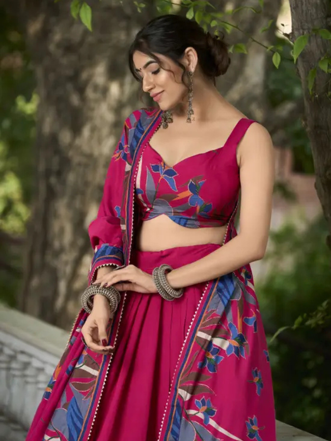 Printed Semi Stitched Lehenga Choli (Pink)
