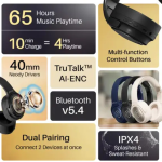 PTron Studio Pro w/ 65hrs Playtime, AI-ENC Calls, Pristine Sound, Dual-device Pairing Bluetooth & Wired (Jet Black, On the Ear)