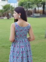 Women A-line Blue Midi/Calf Length Dress