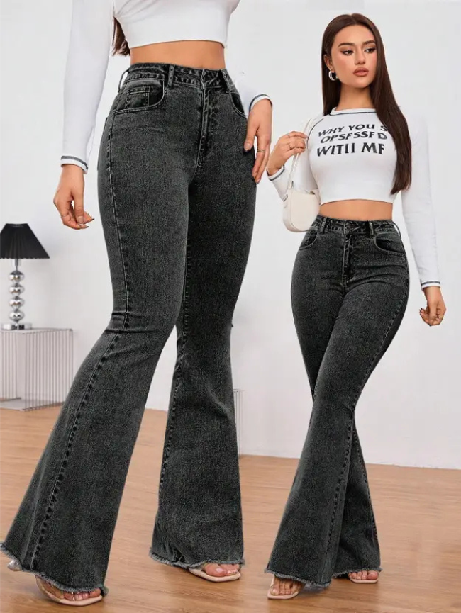 Women Boot-Leg High Rise Black Jeans