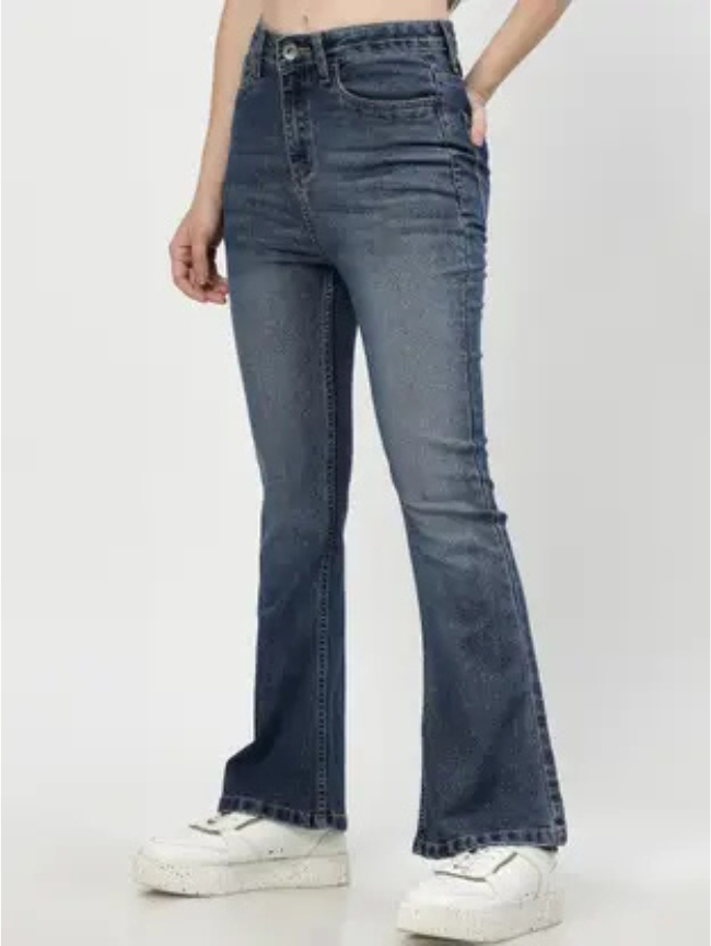 Women Boot-Leg High Rise Blue Jeans