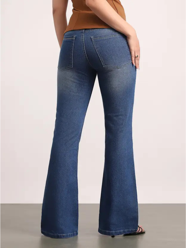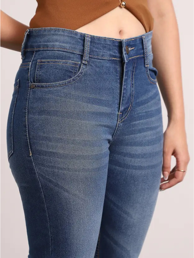 Women Boot-Leg Mid Rise Blue Jeans