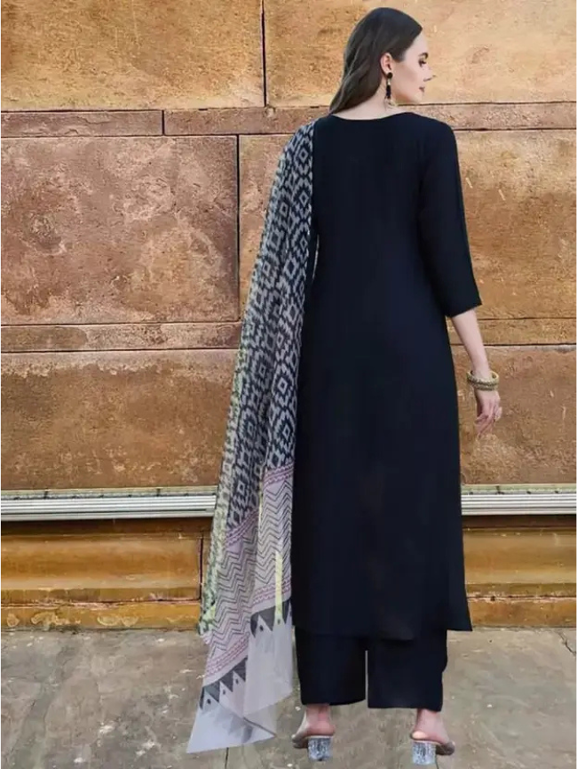 Women Cotton Rayon Kurta Palazzo Dupatta Set