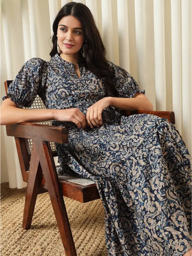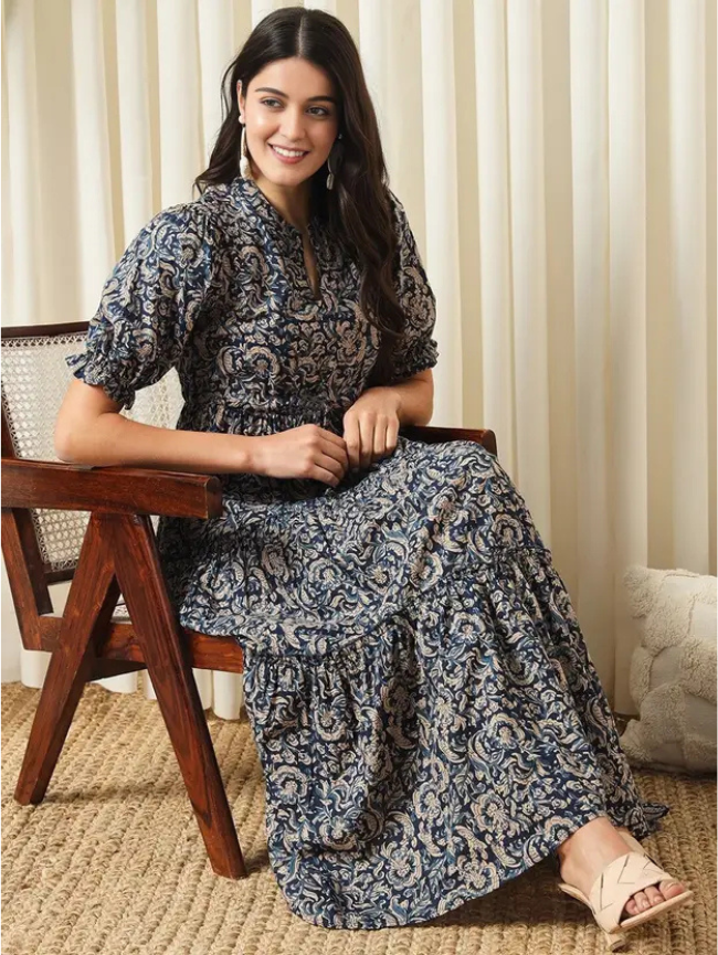 Women A-line Blue Midi/Calf Length Dress