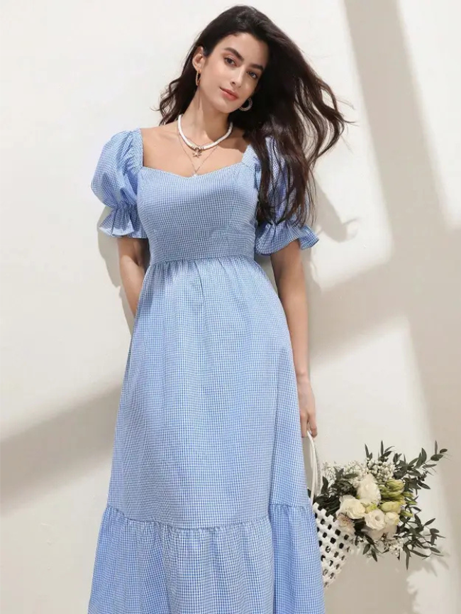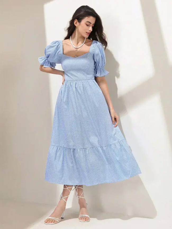 Women A-line Blue Midi/Calf Length Dress