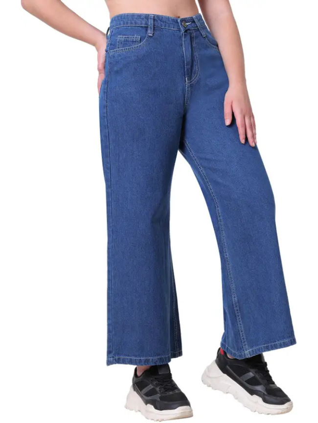 Women Flared High Rise Blue Jeans