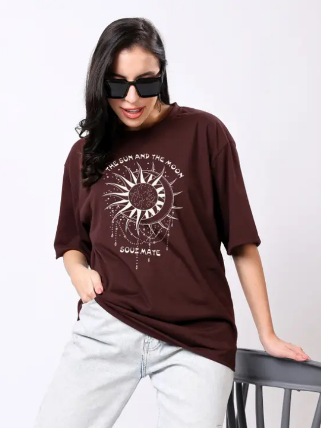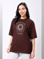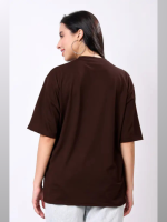 Women Printed Round Neck Cotton Blend Brown T-Shirt
