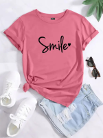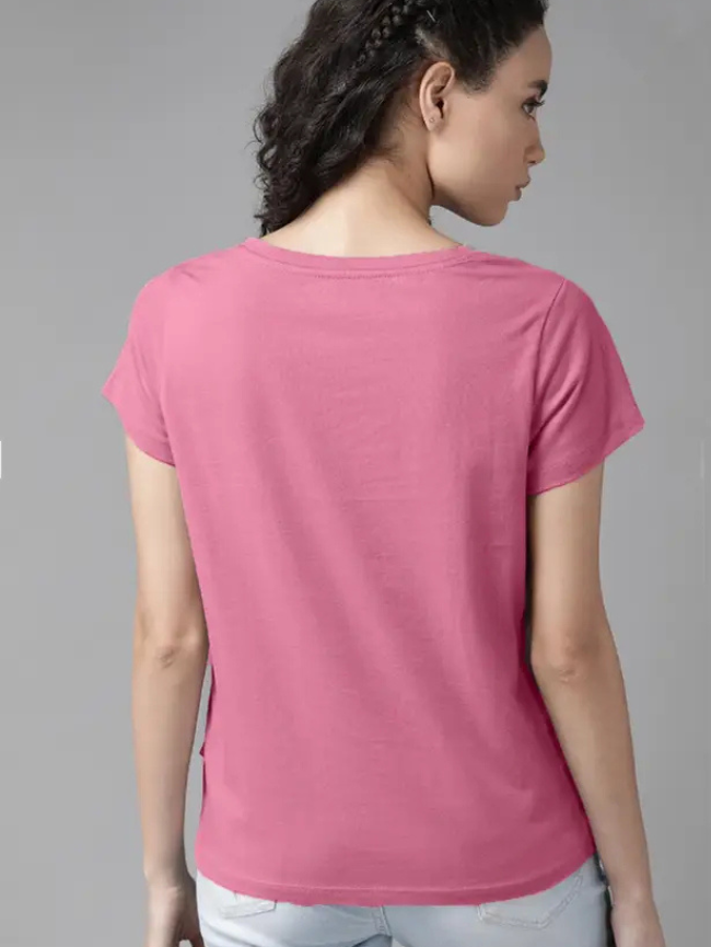 Women Printed Round Neck Cotton Blend Pink T-Shirt