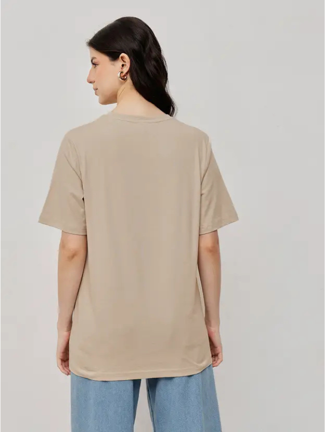 Women Printed Round Neck Pure Cotton Beige T-Shirt