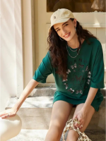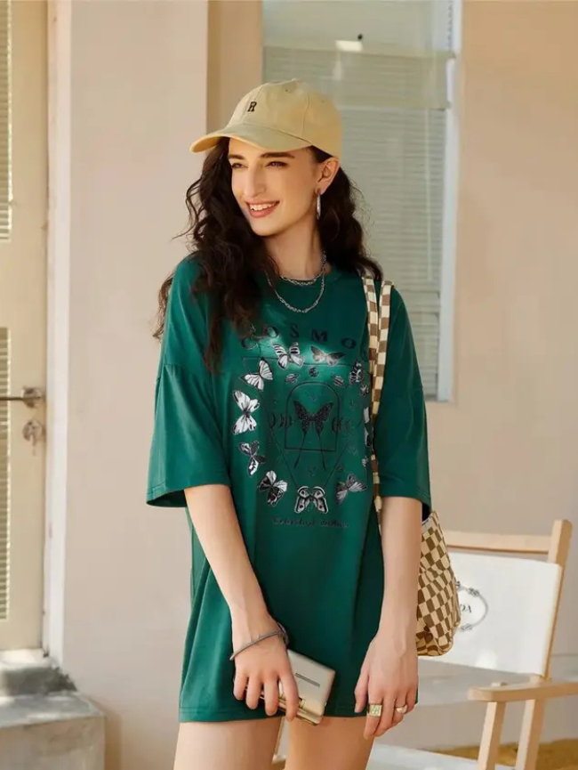 Women Printed, Typography Round Neck Pure Cotton Green T-Shirt