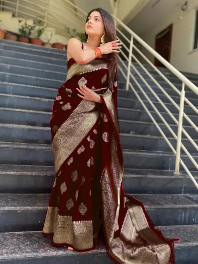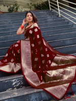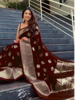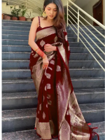 Woven Kanjivaram Pure Silk, Art Silk Saree (Maroon)